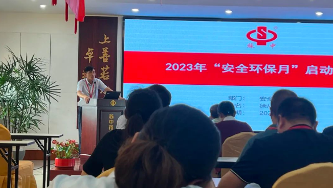 徐经理宣读了公司《2023年安全环保月活动方案》,活动围绕习近平总书记关于安全生产重要论述宣贯活动、创新开展“安全环保月”活动、强化避险逃生演练和典型案例警示等主题进行展开。