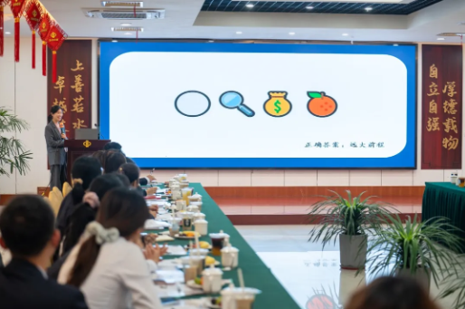 “雅致对吟”“emoji猜书名”两大文化游戏将气氛推向高潮。在古诗接龙环节,一句“千朵万朵压枝低”刚出,台下即刻响起“黄四娘家花满蹊”的应答;emoji猜书名时,当主持人展示“👨‍🦳🐠🌊”时,现场秒答《老人与海》;而“●★💡🚩”则难倒众人,最终揭晓答案《红心闪耀中国》时引发阵阵欢笑。活动通过轻松竞技拉近人才距离,展现文化底蕴。