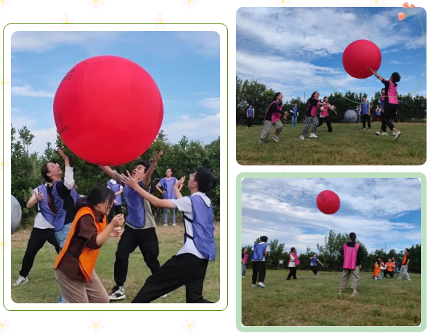 最后一个项目为健球大作战,即三人抬球一人击球,指定其他团队进行接球。在这个游戏里体验更多的是团队合作、对球场变化的应急反应力以及队员体能的极限挑战。