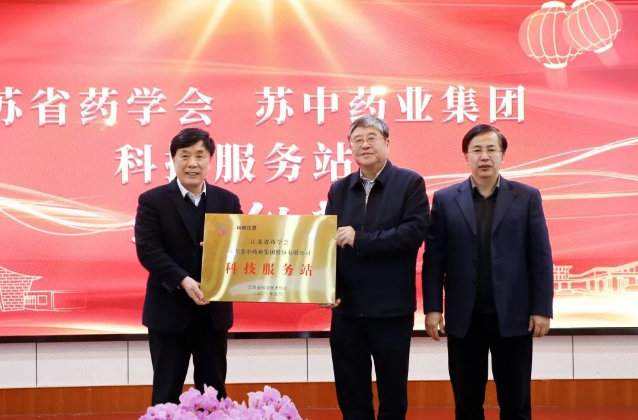 江苏省科学技术协会副主席冯少东为江苏省药学会&xpj国际,xpj官网登录入口集团“科技服务站”授牌