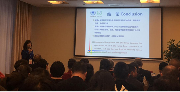 来自中国、新加坡、美国、台湾等国家和地区的十四位专家结合临床案例进行了学术分享和经验交流,受到了与会人员的一致好评。中国首都医科大学附属北京儿童医院杨燕教授发表了《清宣止咳颗粒治疗儿童感冒(风热证)临床研究》学术报告,杨教授在报告指出:经过严谨的方案设计、伦理批准、临床注册、病例搜集、统计分析等流程,为期一年半的多中心临床研究结果表明:清宣止咳颗粒可有效改善儿童感冒风热证的症状,具有退热、止咳、化痰的功效,口感好,儿童依从性更高,相比于对照组具有统计学差异(P<0.05)。